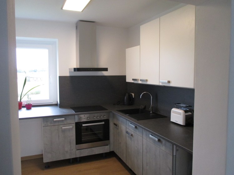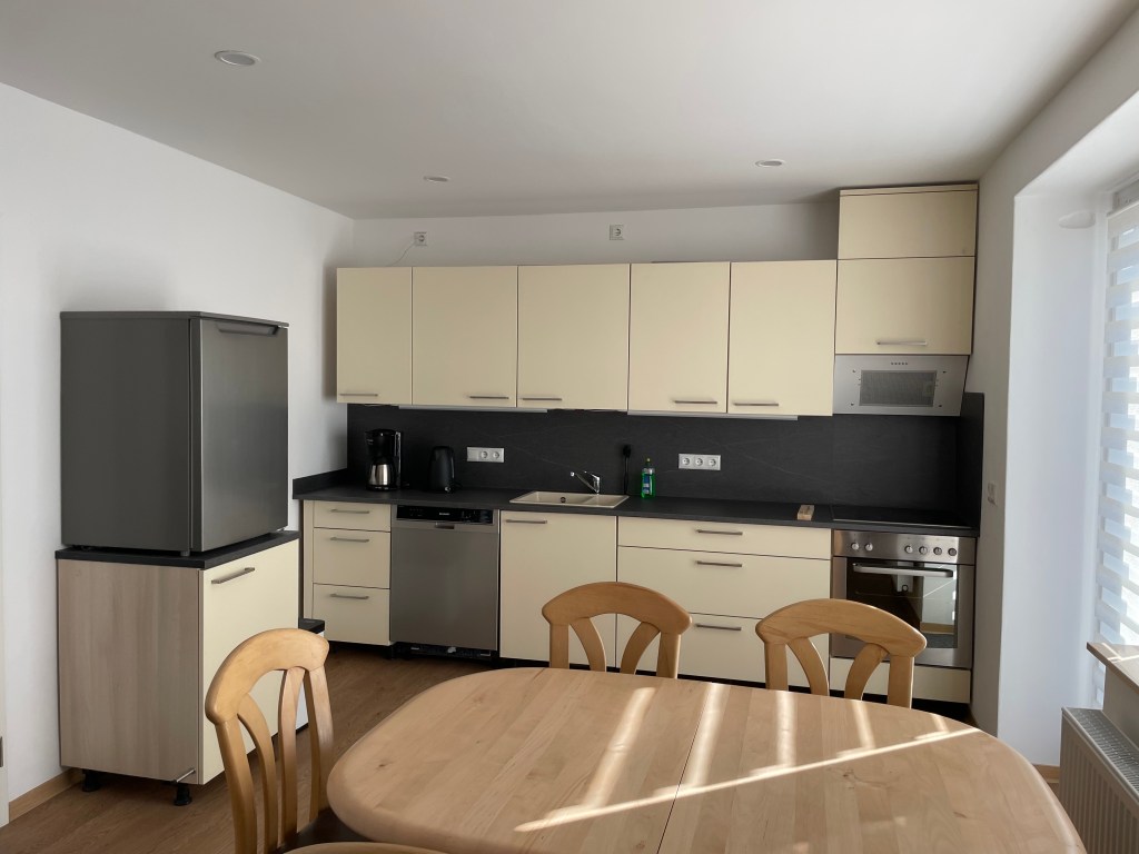 (Herd inkl. Backofen, Kühlschrank mit Gefrierfach, Spülmaschine, Kaffeemaschine, Wasserkocher, Toaster, Küchenutensilien) - Wohn- Esszimmer mit TV